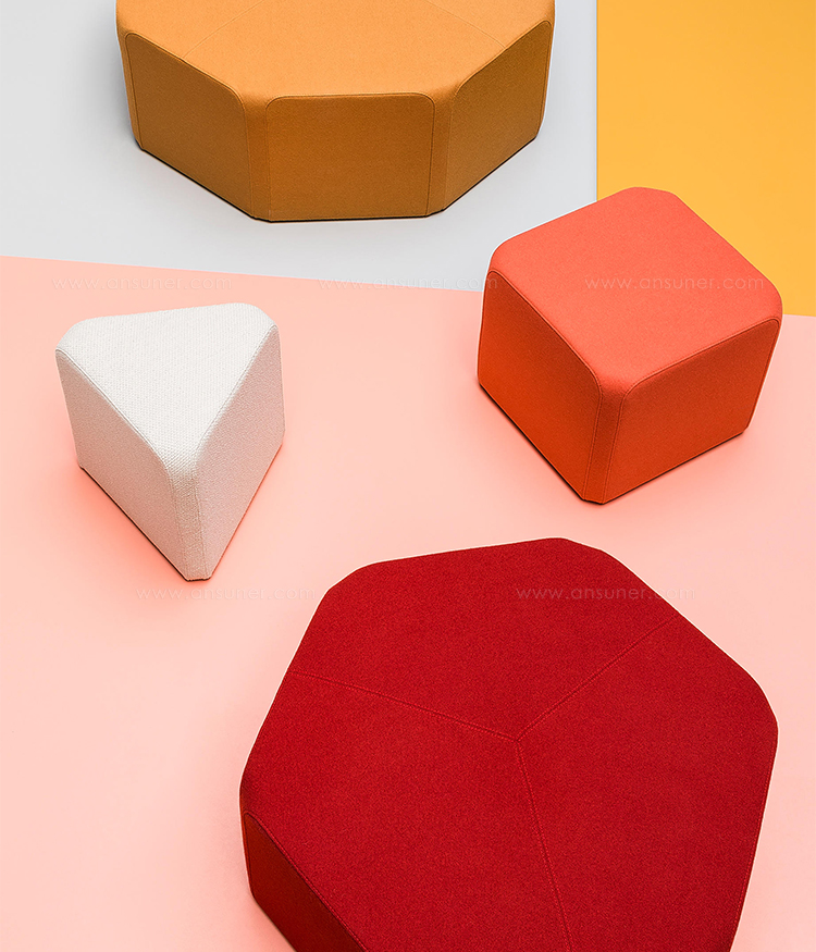 x40是一个有多边形基础的4个小袋。座椅是由三角形,方形,六边形和八边形设计的。所有固体共享的元素是一个圆角矩形,宽40厘米。由于有相同的侧边,袋子可以放置在各种各样的安排中。基于这一独特的重复的质量和广泛的NOTI面料颜色,用户可以尝试各种各样的安排的可能性。