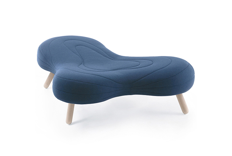 不规则的、变形的沙发形式允许创造一个不寻常的公共空间。这些模块是用木制的腿,小的隐藏的腿,这样沙发看起来就像是直接躺在地上,或者悬挂在绳子上,给人一种漂浮在空中的感觉。设计的主要特点是有可能在功能和外观方面提供不同的基础。这些座椅有两人位和三人位型号可供选择。