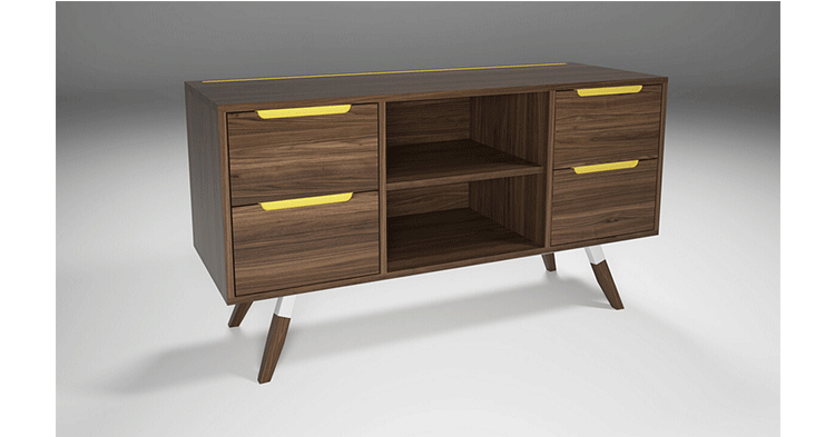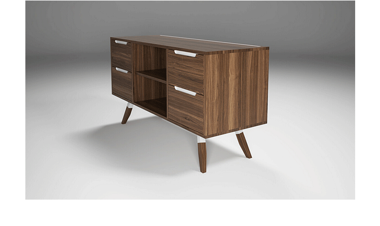 avenue console(大道控制台)有很多用途,可以用来收纳,当做娱乐控制台或自助餐台等等功能等着您去合理的利用。制作采用精选MDF板基材、进口美洲胡桃木皮贴面、实木脚架、彩色装饰边、五金拉手、七彩门板、环保净味油漆喷涂、做工精湛。
