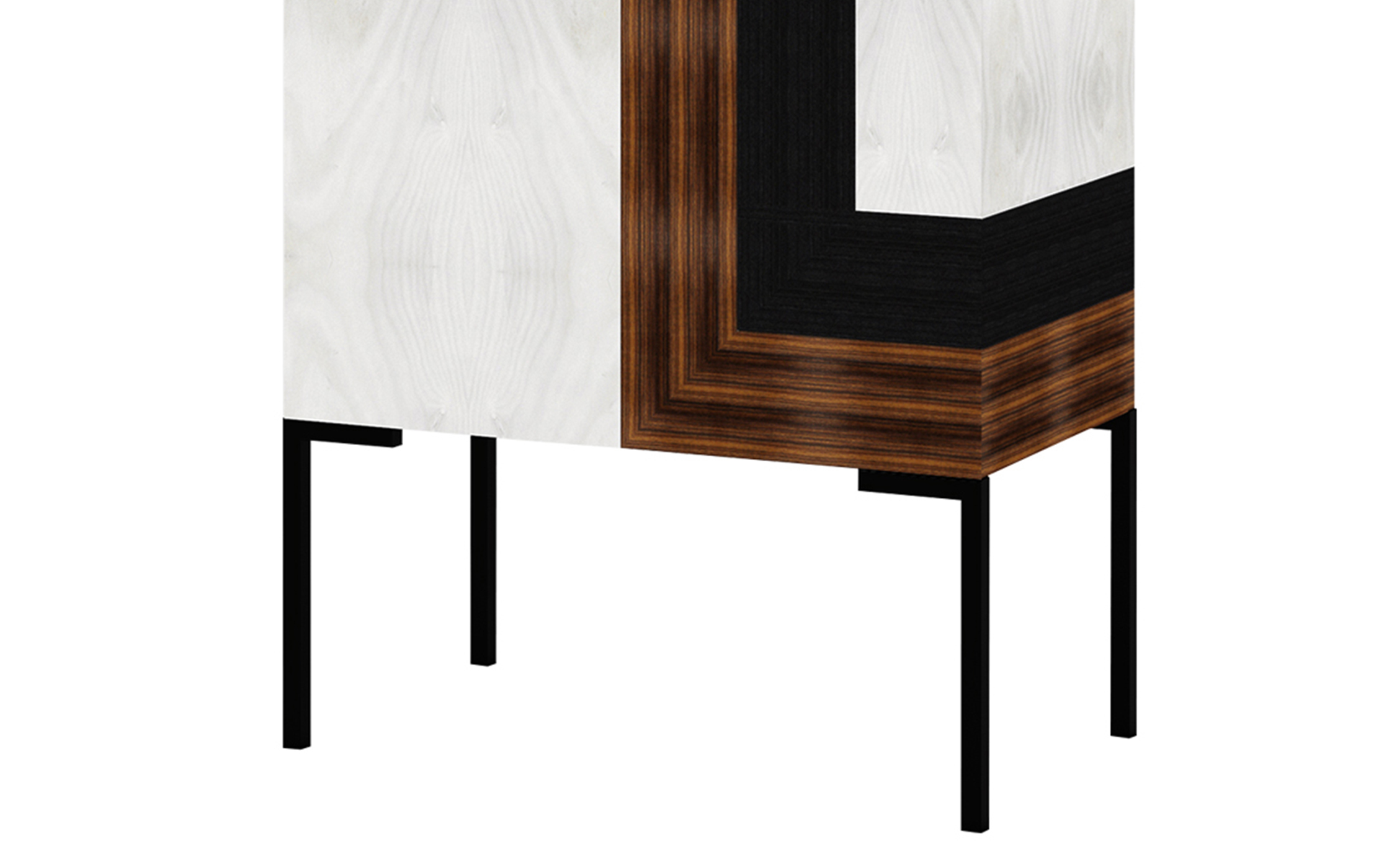 专家木大师精心设计这一块,一个精致的木装饰重建三维光学错觉。 树林里使用乌木、紫木香木材,木灰和增白桑托斯在内部块珍贵的红木。 拉长了一下铁腿黑色不透明涂饰剂完成这个引人注目的对象,为任何空间带来了永恒的魅力.