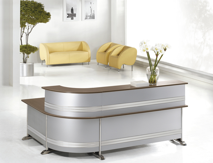 ※ 上图为前台正面图,银色饰边条,精致美观,简洁而富现代感的外观,搭配多元化的桌面及配色设计,令空间富有灵动的变化;精致、稳固的金属元素是其品质的追求。