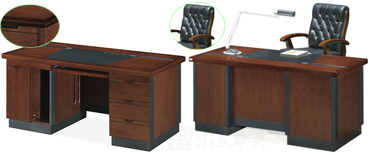 ※ 上图为实木职员桌的正面和背面的配置展示图,右图为背面展示图片的,功能配置有:实木键盘架,木质三抽落地柜,单门文件柜。左图正面展示图有:镶嵌式皮垫,木质自然纹理,黑色漆分线条,层次感强!
