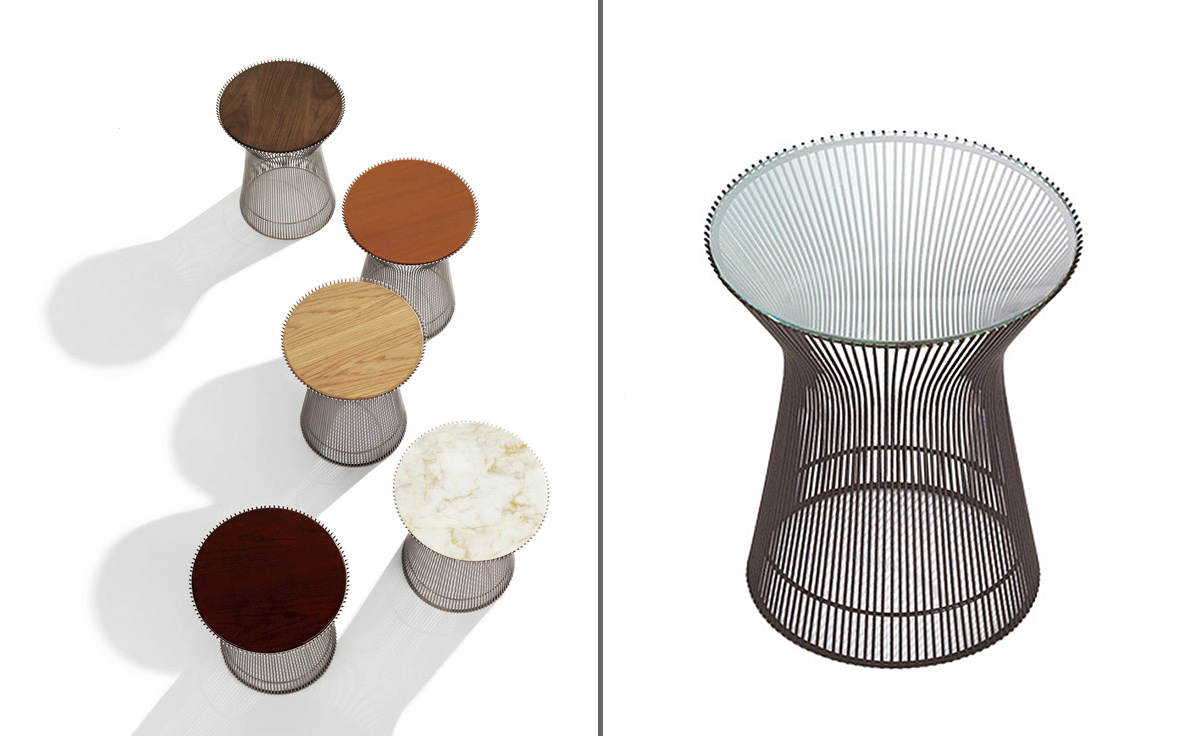 1966年榮獲 American Institute of Architects International Award 美國建築協會國際大獎的 Platner Chair,在設計師 Warren Platner 的創意下,將鋼絲雕塑轉化成一系列收藏級的傢俱,創造了現在被認為是當今時代的設計圖標。