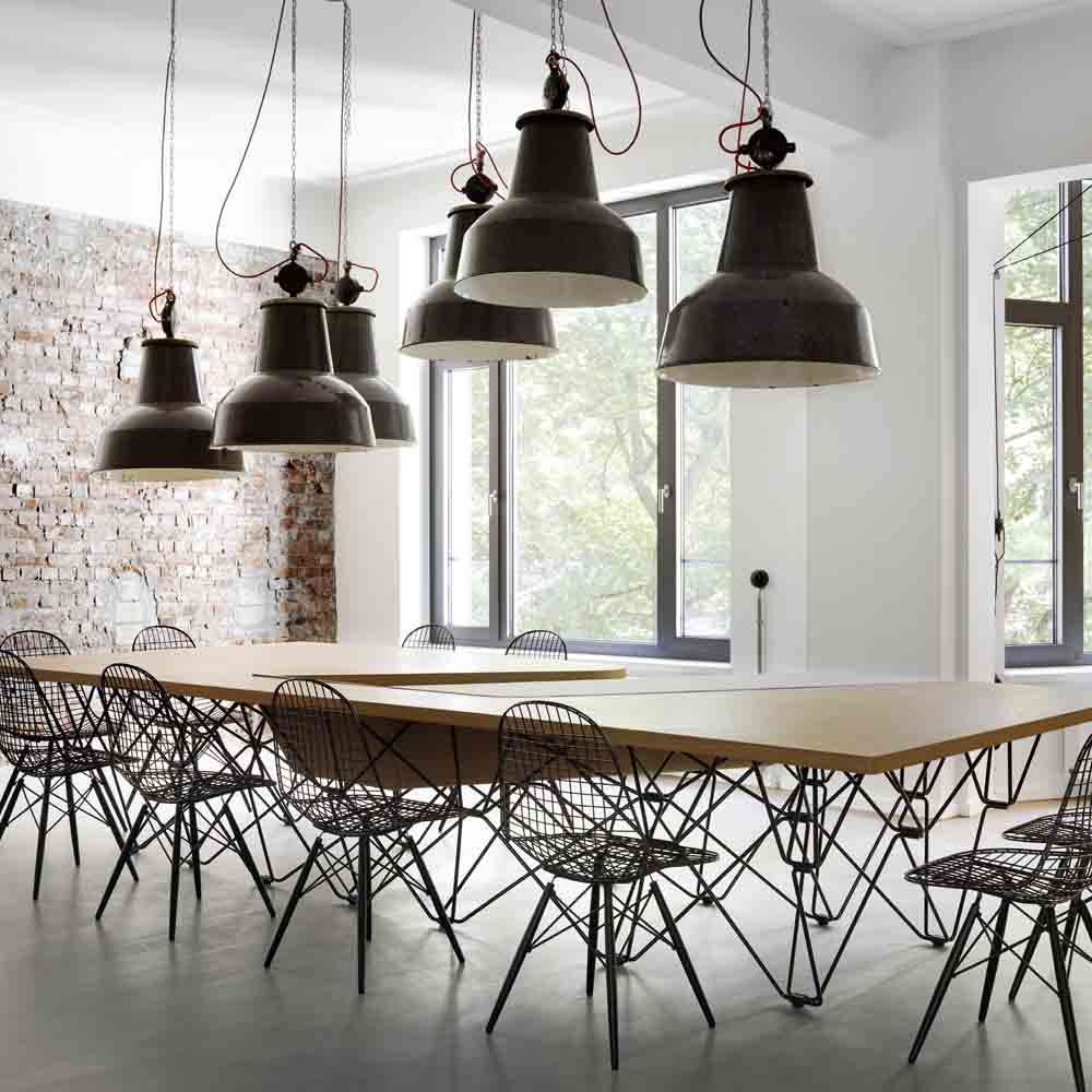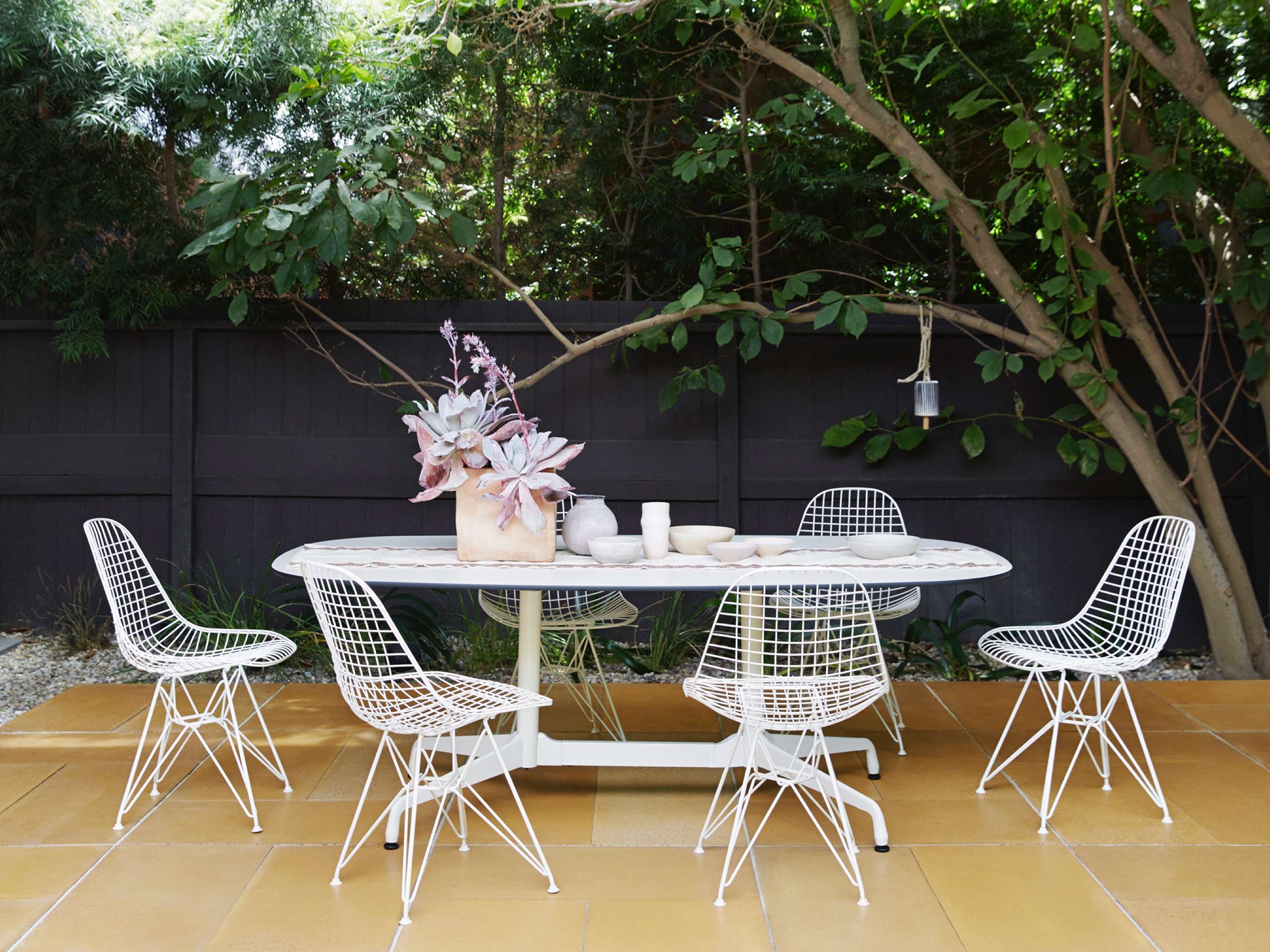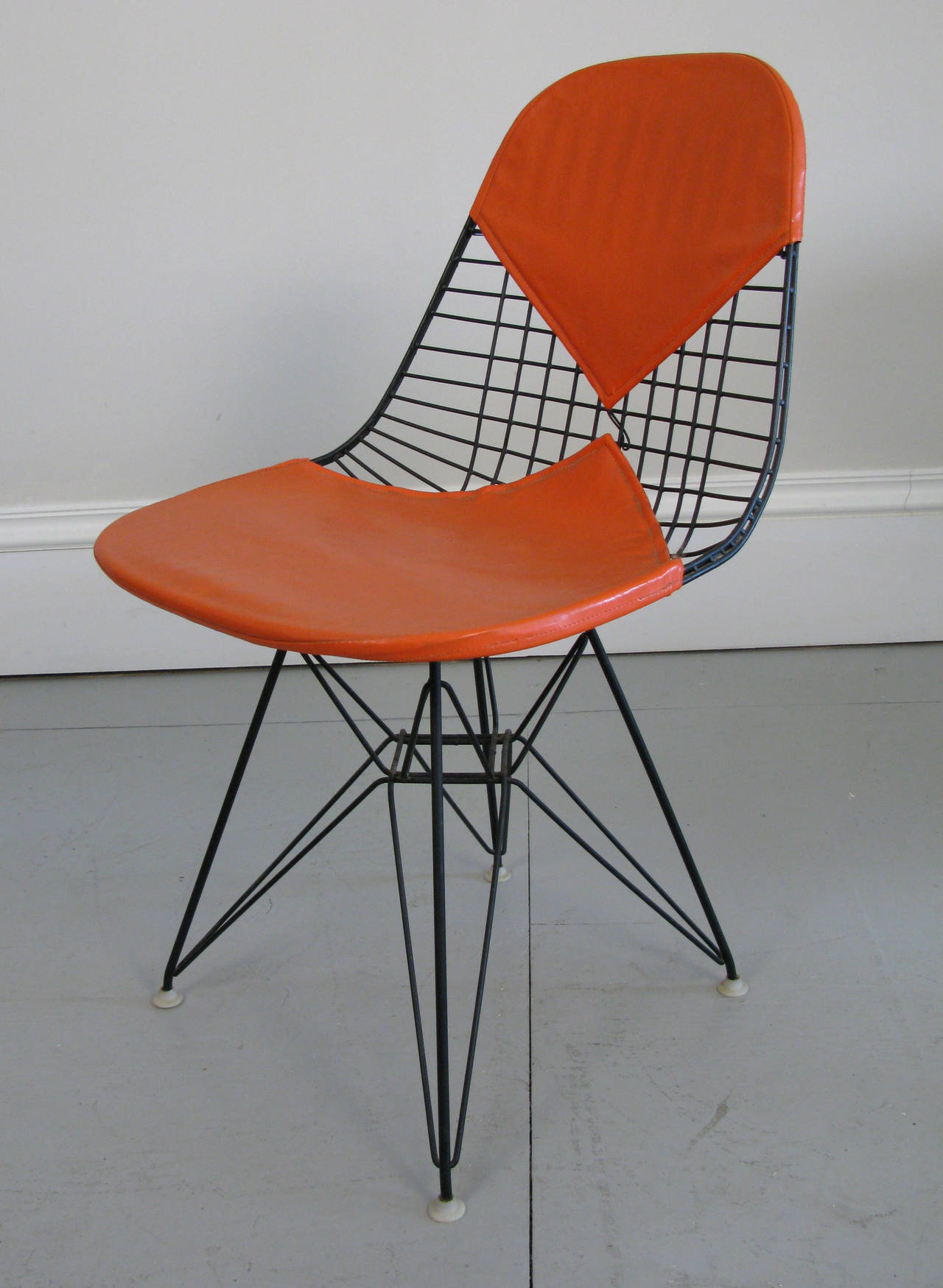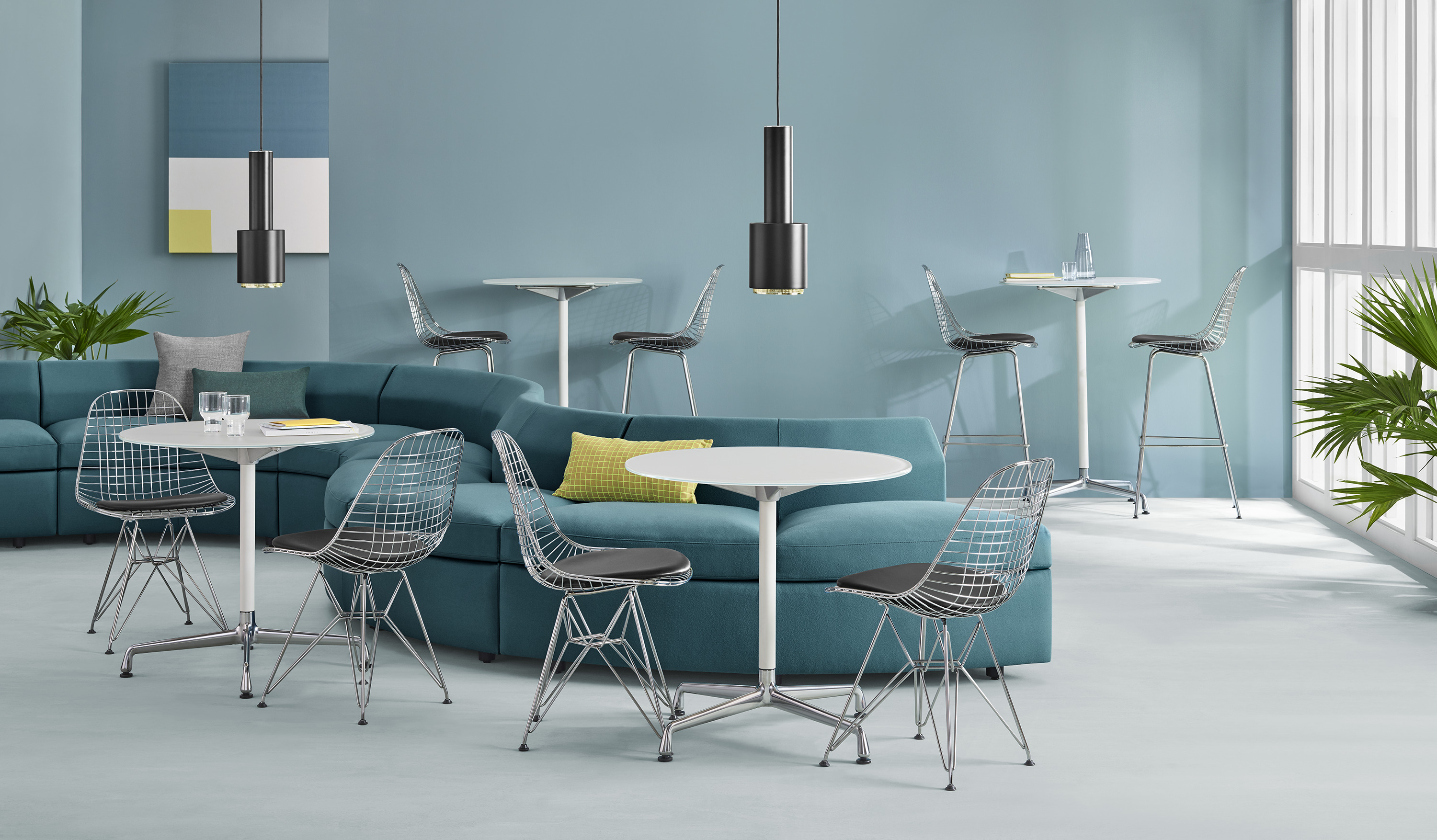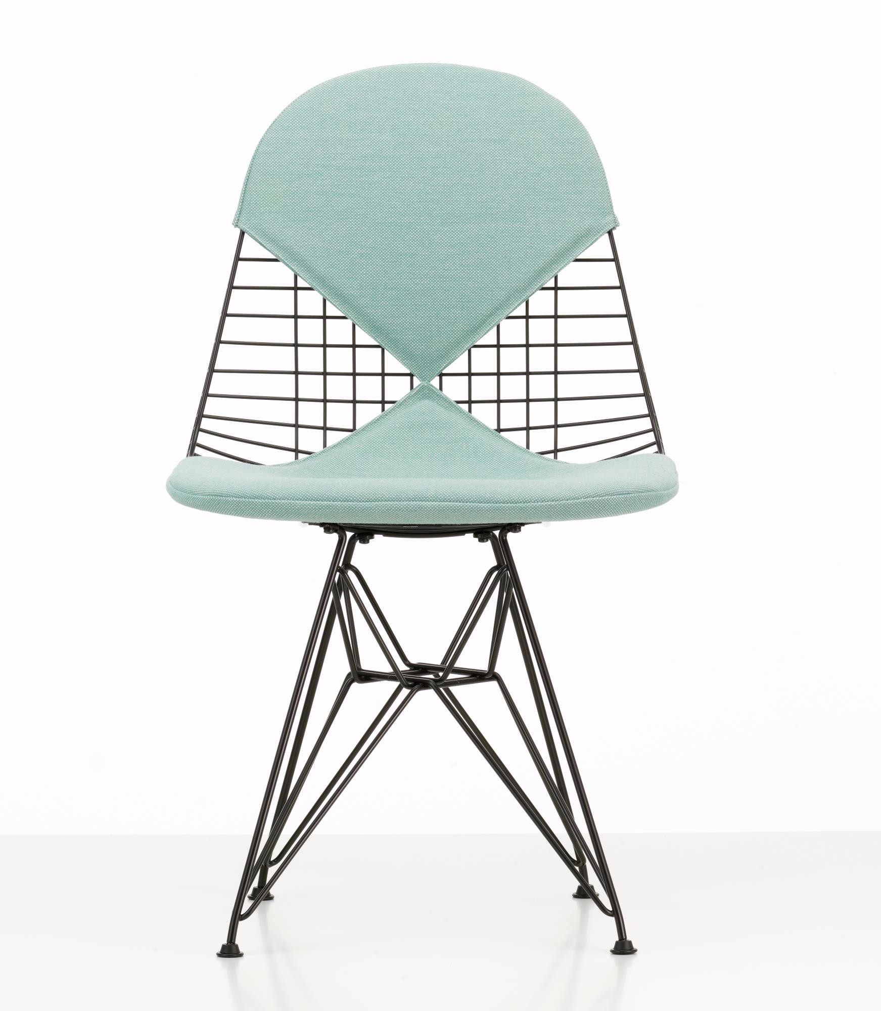 Charles & Ray Eames 1951 年發表的 Wire Chair 系列,以一片式有機網狀椅座,延伸變化出一系列不同椅腳及座墊搭配的單椅,這系列椅款輕巧透明的設計,在 60 年代可說是運用了當時最先進的技術來製作,靈感則是來自於鏤空的金屬收納籃,金屬條交織的椅座,彎曲的弧面不僅符合人體工學,在視覺上更具有穿透性。
