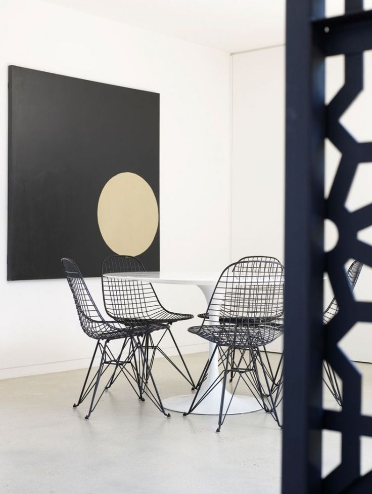 DKR 單椅結合了 Wire Chair 的網狀金屬椅座搭配鐵塔椅腳。
