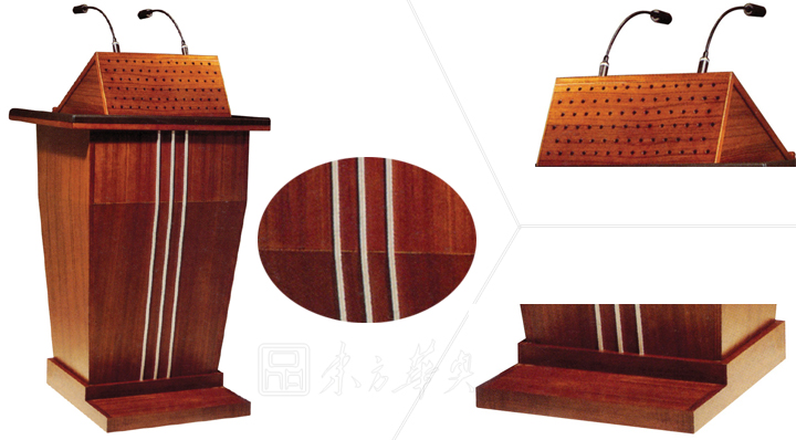 ※ 上图为演讲台细节展示图,厚实的底座,可选配话筒等配件,主体佐以三色组合!