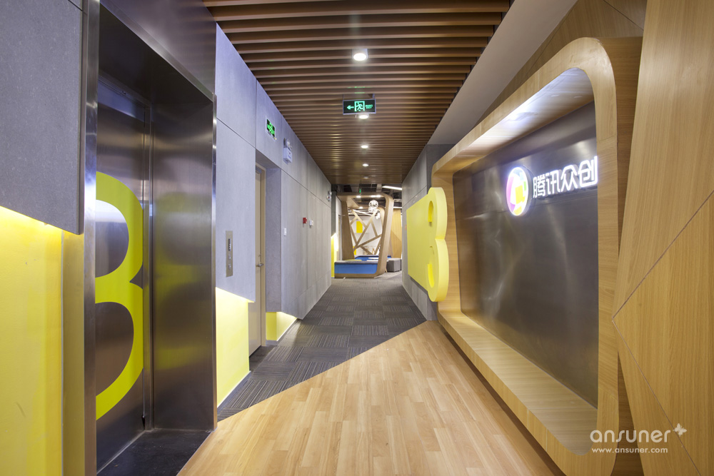 本案位于南京市栖霞区紫东国际创意园B5/B6栋楼,由艾迪尔建筑装饰上海分公司的设计团队打造。腾讯众创空间是在开放平台的基础上升级,延续在开放平台中为创业者提供的服务,联合社会资源从软硬件和创业条件等方面来打造更好的创业环境。立体式项目孵化器与其它国内创业孵化器不同,腾讯社交网络事业群副总裁林松涛表示,腾讯众创空间具备包括线上、线下5种核心能力——流量加速、开放支持、创业承载、培训教育和辐射带动等,满足创业者对资金、成长、场地、营销和流量的需求。 ▼B6栋楼