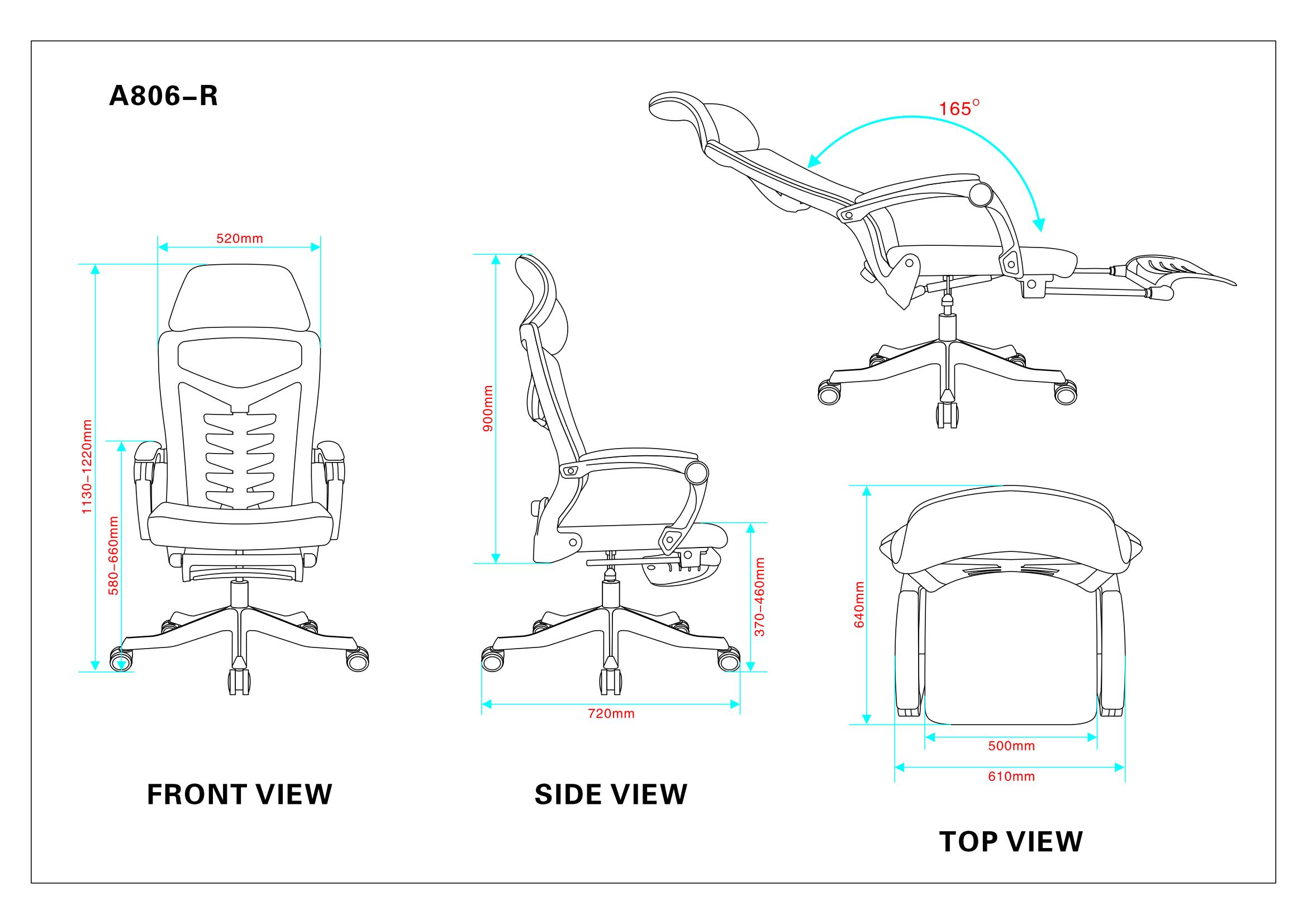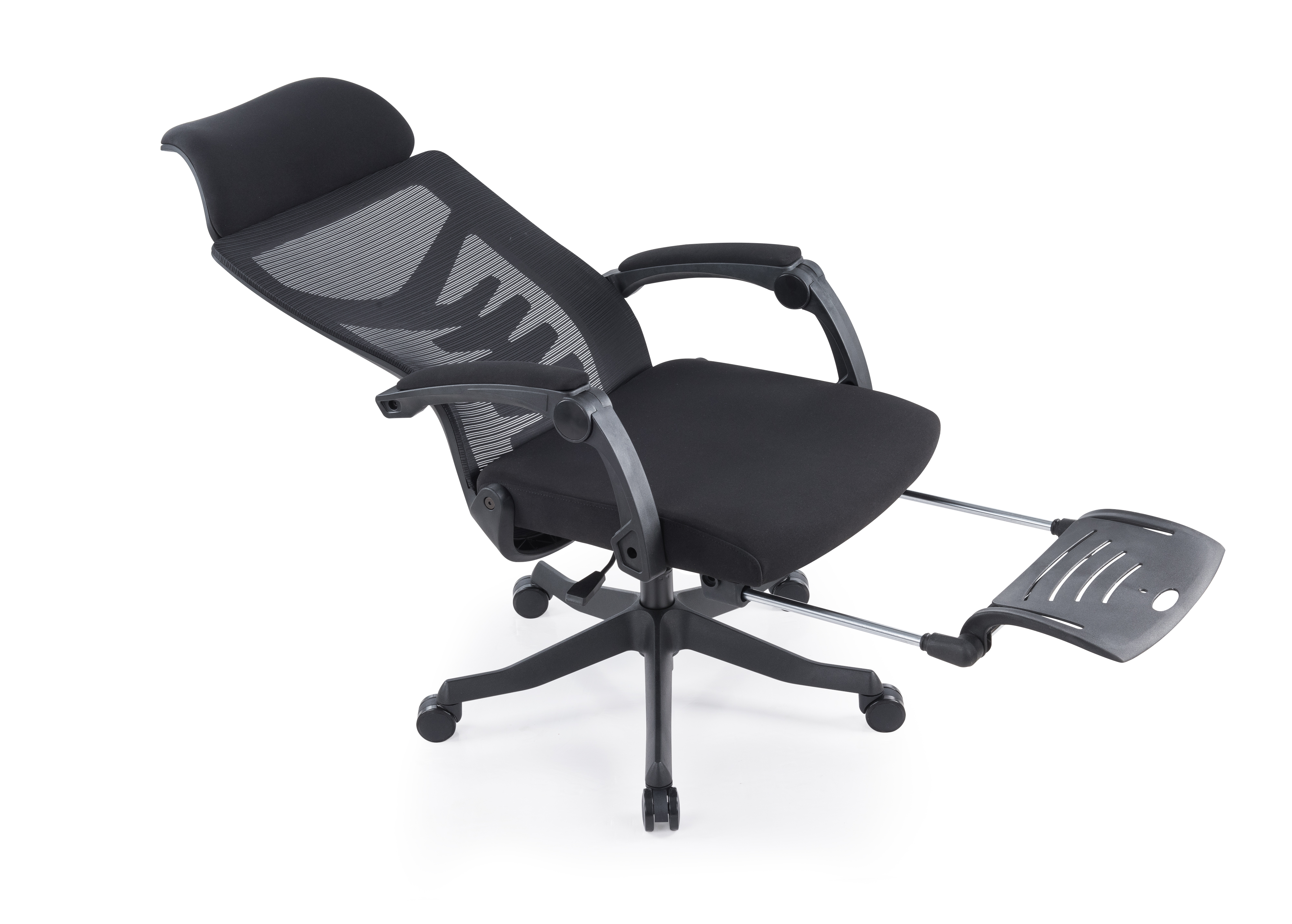 头枕:头枕靠背坐垫采用优质网布,升级大贴面软包头枕,柔软舒适 背框:黑色PA尼龙+玻璃纤维注塑配件,功能鱼骨腰枕,可前后调节灵动支撑,外拉式300N线控气动躺度功能,靠背可任意角度调节,最大可躺170° 坐垫:45#密度原生高弹力切割海绵坐垫,扪高弹力透气网布,安装隐藏式伸缩脚踏 扶手:自适应联动扶手,扶手面扪透气网布,手臂坐躺皆可支撑 气杆:优质黑色三级气压棒 椅脚:高强度345#尼龙脚,注塑一次成型五星脚 轮子:60黑色PU脚轮