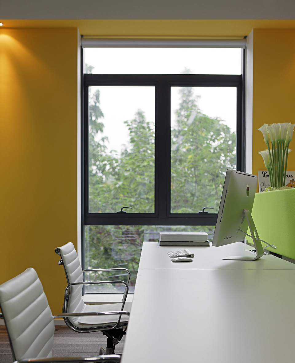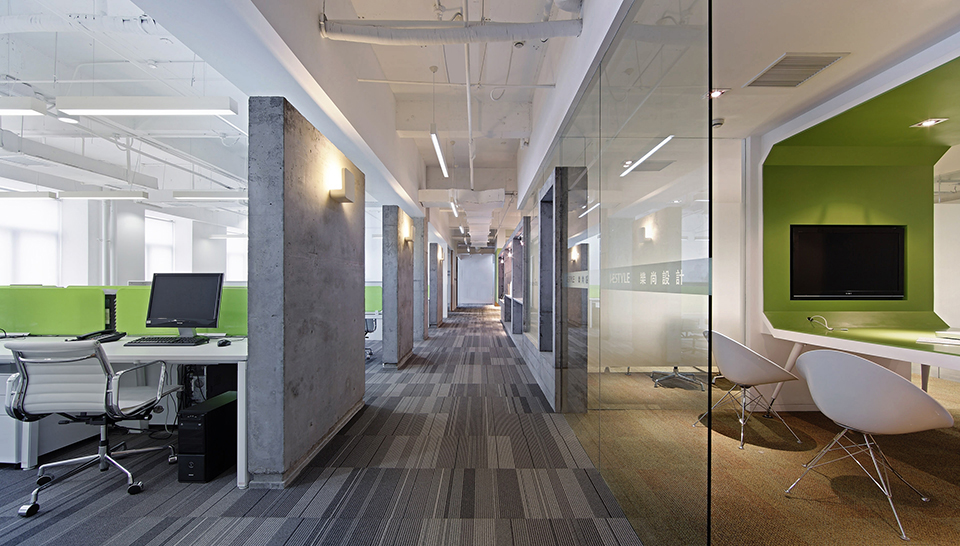 本案设计初期,乐尚的设计师们将公司自身“创意自由,规划严谨”的设计理念,将我们工作与客户交流的平台环境,最终分为两个追求的目标,其一展现并满足自身所需的平面功能外,将这一平面立体展开,实现了其二我们想要表达的空间感、层次感、质感,最终我们需要的乐尚在三维立体空间展现在我们面前。 初期的概念构想,一个时代的元素融入另一时代中,体现为取一种工业性质的混凝水泥墙体,恰到好处的融合到很现代的空间中。这两种质感不同的元素混合,精心的在设计师的深化思维中,重新进行了空间搭配,二者发生了很巧妙的发酵,同时,大面积采用玻璃隔断,让每个比邻区域通透感增强,与此同时,乐尚的抹茶绿及橙色标准色调,恰到好处穿插在每个区域中。而这些恰恰体现在不同场合下的整体视觉感,干净整洁的线条贯穿空间始终同时力求突出舒适性。各区域即独立又相互融合,亦可根据公司的使用和发展灵活调配。布局上层次分明,以一致的线条走向自然过渡到每个办公空间,以简洁的线条表现形式美,再配以恰到好处的灯光,营造出一个简洁明朗、自然通透的现代空间。用朴素的手法表现空间的本质,传达文化的内涵。营造出一个充满张力,移步逸景的办公空间。