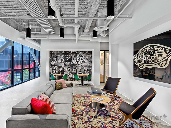 为了增强整体的社区凝聚感,每个楼层都围绕中庭建立一道环形公共走廊,并沿着走道布局一系列休闲会议空间、有趣的座位区,这样每位员工都可以从各个角度欣赏中庭美景。环形走廊让员工或访客在漫步于整个建筑时不会干扰到其他人的工作。