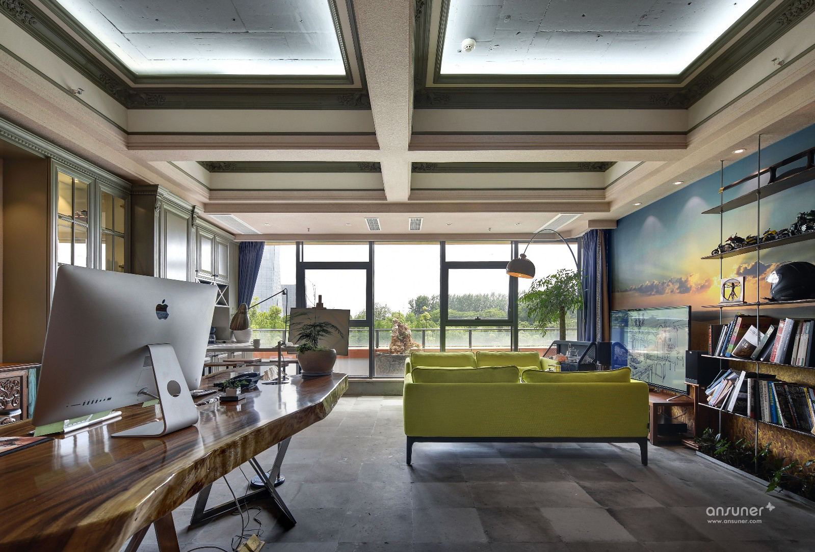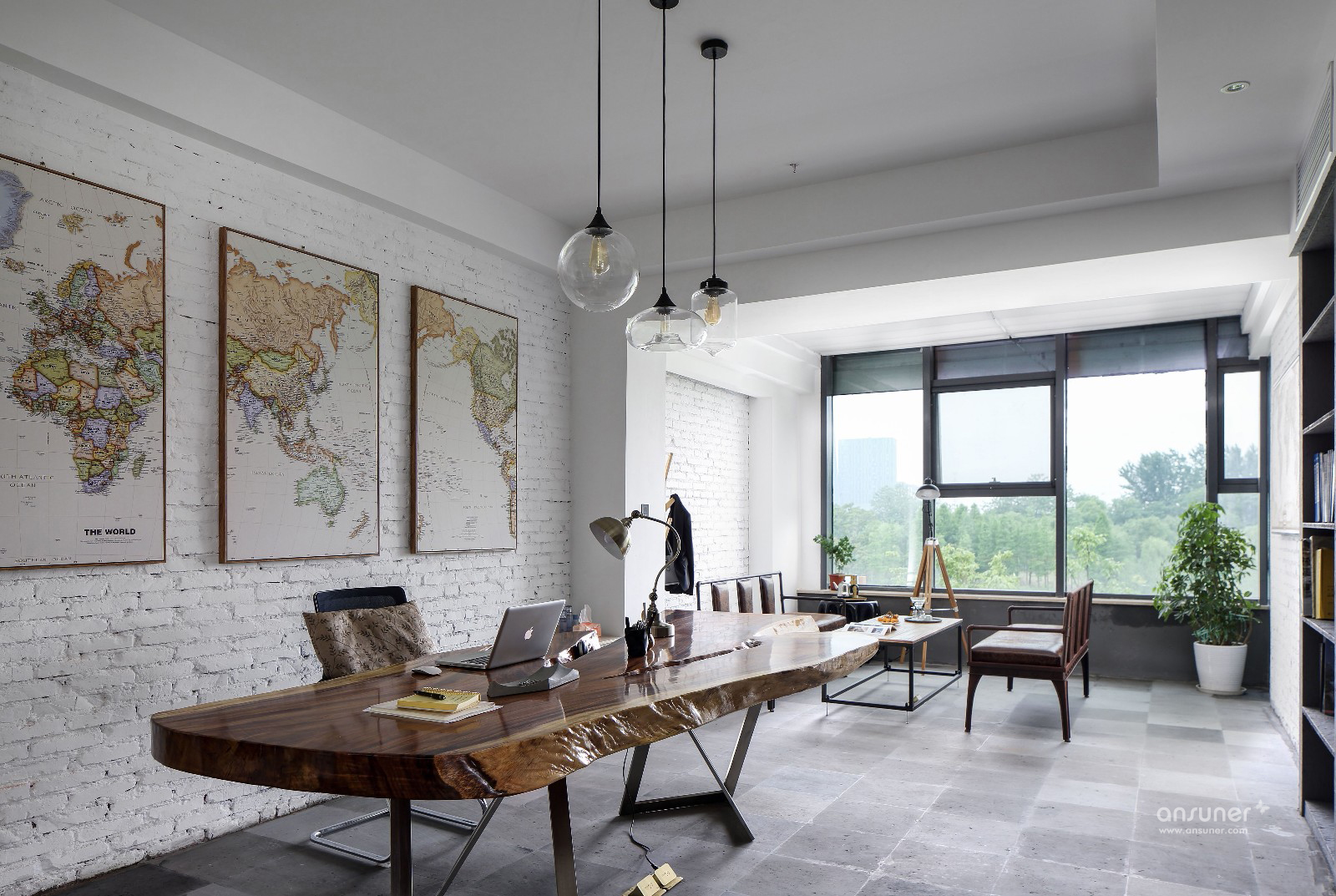 各种文化的碰撞,各种材质的尝试,尤其是废旧材料的利用,讲究环保与节能,绿色装修,自然古朴。会议区与交通区域融合,达到节约空间的目的。公司LOGO背景寓意为设计师通过敏捷的设计能力,让思想闪光。