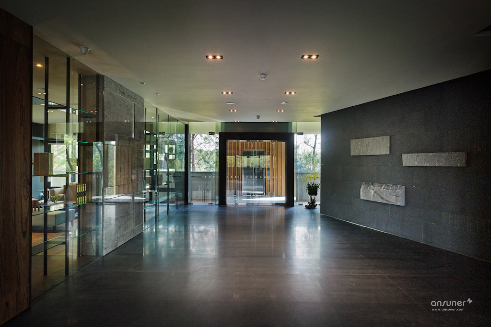 通透的梯厅,多功能的会议室,当门片全部开启时,光线自由篡流,阴霾一扫而空。 柱顶及长廊墙上的间接灯光溢流而下,柱子与墙的边界消失在天花板内。 光,在空间里无声的说话!