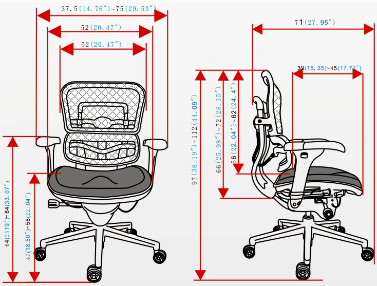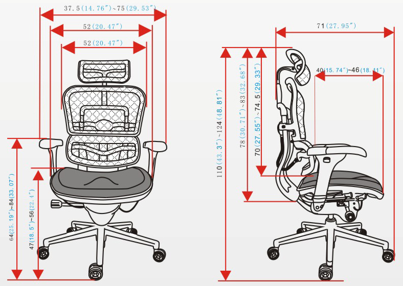 4、扶手前后、角度、高度可调节;