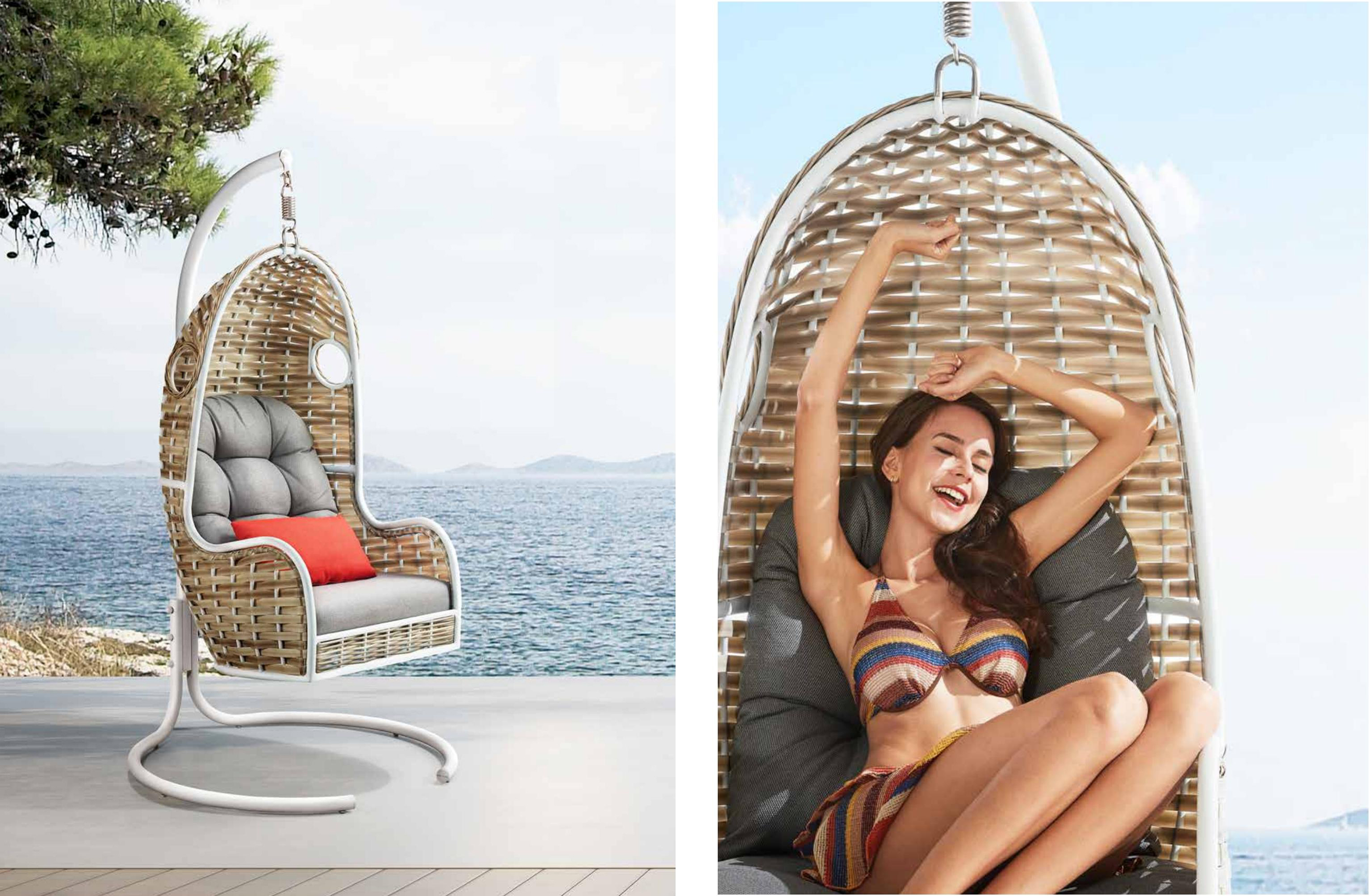 设计灵感:神舟十号宇宙飞船返回舱 “变”---顶盖拆分后可变为圆弧形的茶几,上盖展开后可以成为一张单独的沙发床,而一旁的脚凳收纳后即成为上盖坐垫,整个产品摇身一变为两个沙发床套件 “多”---配有21个舒适坐背垫(10个大,11个小),可以无忧舒适地躺仰在每个角落 “大”---座高36cm, 依照人体功能学设计,整体设计宽敞,可以容纳一家三口 “柔”---柔软的环保PE藤编制让原本硬朗的神十返回舱,多了一份柔情 整体造型让人联想到伟大的中国宇宙飞船,创造舒适的户外生活空间。暴露的内部铝结构提供了一个给用户安全感,也创造出与众不同的视觉美感。 重型铝框架提供了一个强大和安全的结构,坚固的高优质编织柳条,让用户更充分地信任最终产品。能够堆叠成完整的单元,使结构具有吸引力,当不使用时,还能更方便地储存。 该系列提供了一个完整的套房,以满足每一个户外放松需求。从睡觉到吃饭到荡秋千,齐全的设备,充分改善户外生活环境,给用户更多享受。 该套装可作为单张封闭式的日床使用,也能分开变成两个开放的沙发,与单独的咖啡桌和小躺椅。独特的可堆叠的设计,能最大化利用空间,即使不用时,也不占位置,且方便运输储存。