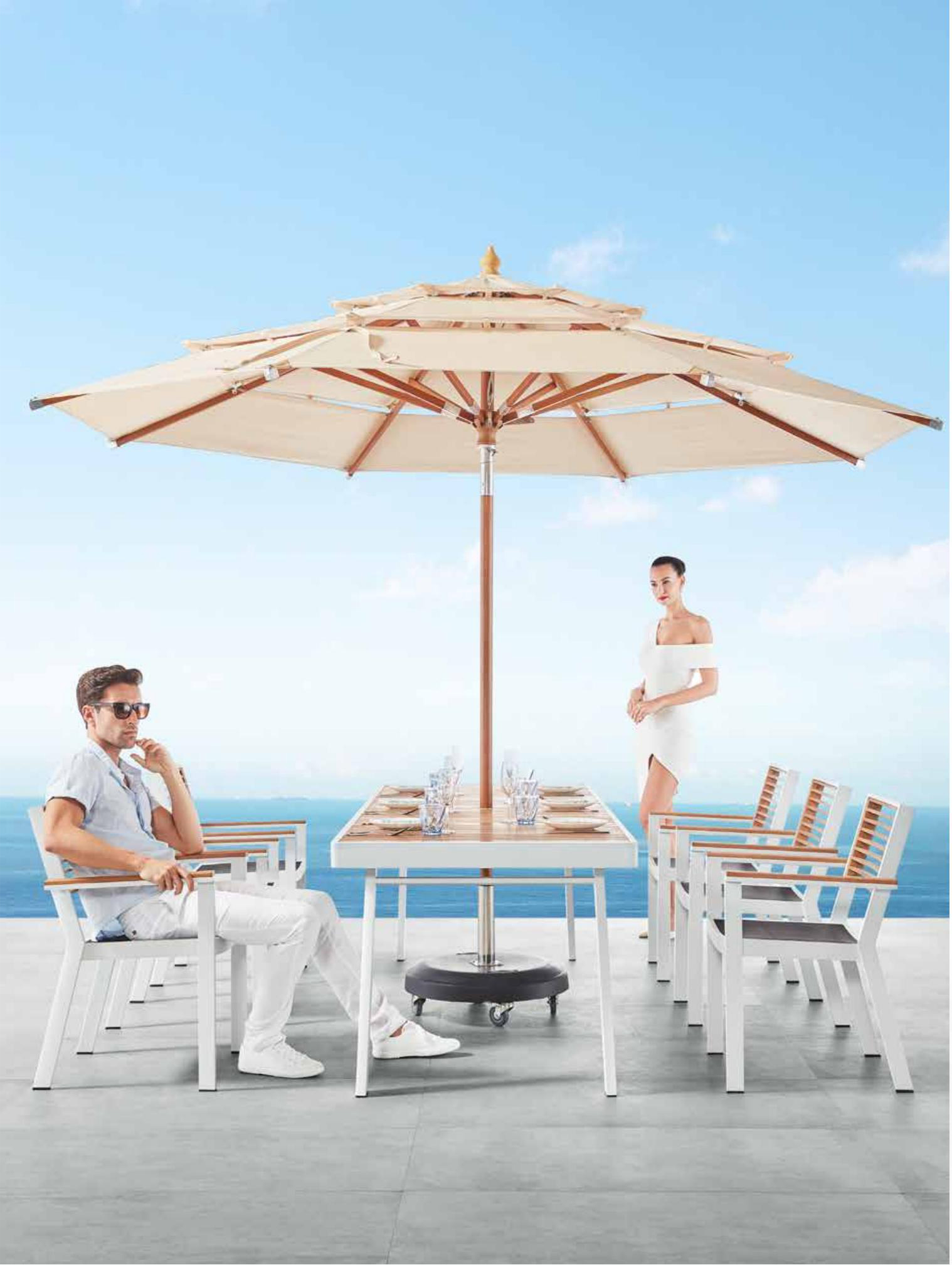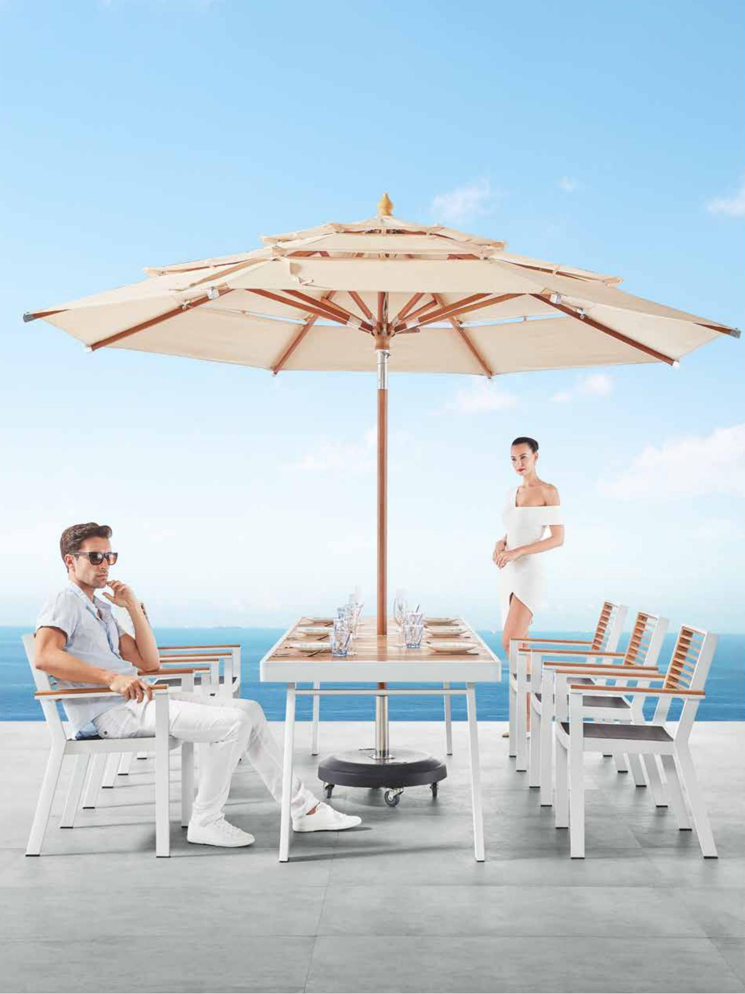 设计灵感:豪华游艇 “贵族”---极具质感的金属外框搭配天然缅甸柚木,像游艇一般体现独有的英朗贵族气质; “功能”---沙发扶手侧板具备半自动可收放功能,单向阻尼系统增加产品安全性和静音性,像游艇夹板一般给客人带来多一份享受的空间 “精品”---约克系列自面世以来一直是悍高最受青睐的设计之一,引爆全球。 约克户外休闲系列打破常规的户外家具设计,不再是纯粹的藤编风格。由天然柚木、舒适特斯林、及白色外框巧妙搭配,衬托出简约但却充满质感的视觉效果。 天然柚木配以优质柔软海绵,给人们带来足不出户即可享受到的舒适户外休闲生活。沙发右边侧板采 用半自动可收放的柚木侧板,使产品空间利用最大化;茶几部位增加冰桶,提升用户户外体验。 约克户外休闲系列自面市以来一直是最受青睐的设计之一,全球共享。现代设计元素的应用,令产品充满青春 阳光的气息。与现代建筑风格融为一体的立体感,York 是全球各大豪华酒店的不二之选。